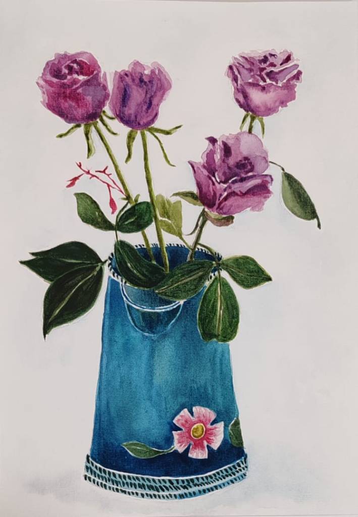 Rather than giving up, I decided to continue painting the leaves and the vase at home. A key reminder for myself: next time, I’ll focus on mixing the correct colors for roses. 🤞
